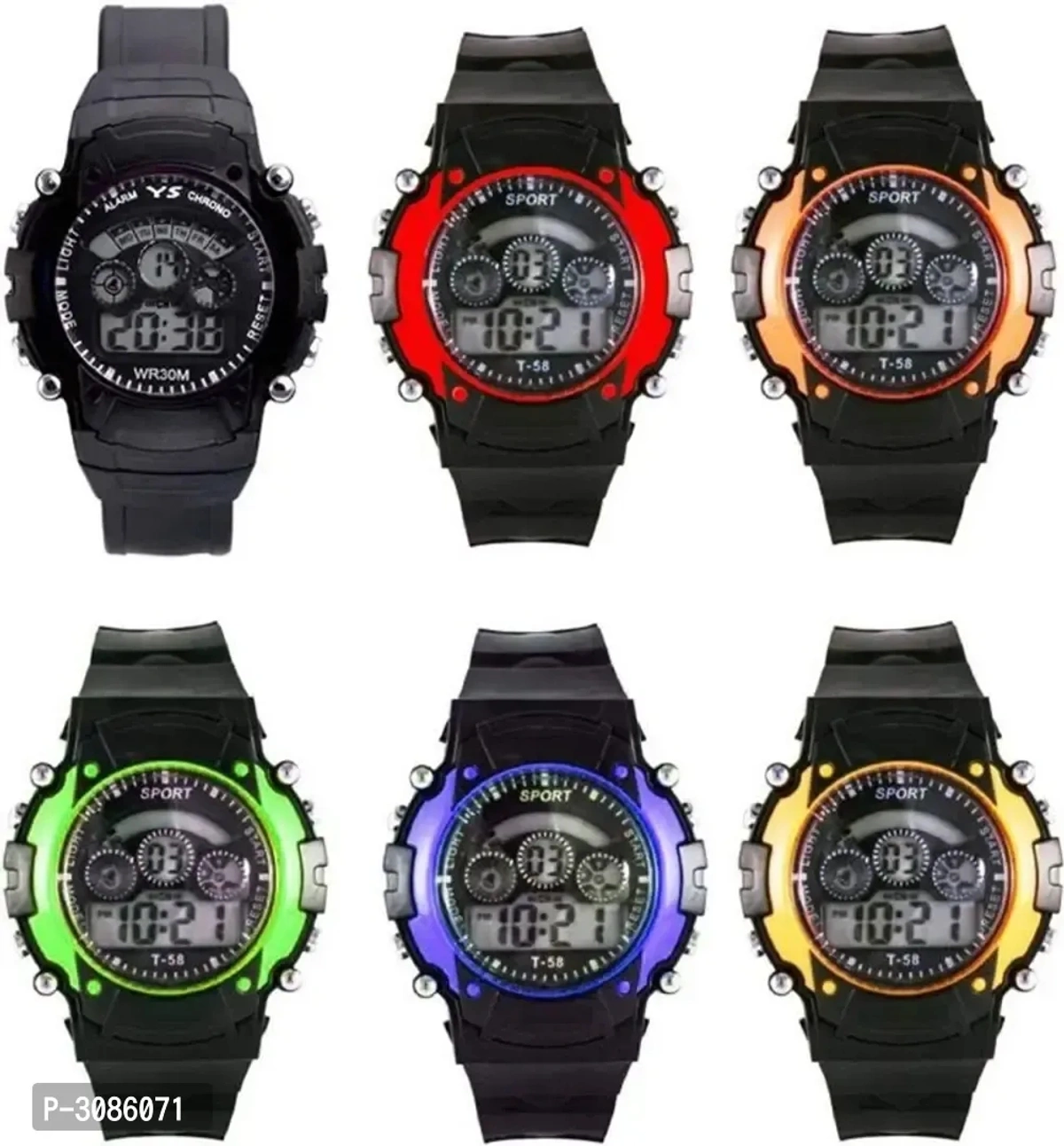 7 Lights Digital Sports Watches (BKREORGRBLYL-Set of 6 pcs)