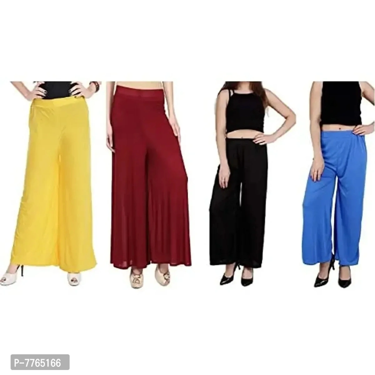 Aglobi Womens Cotton Lycra Palazzo Pant Pack of 4 Free Size (Free Size, B,BL,Y,M)
