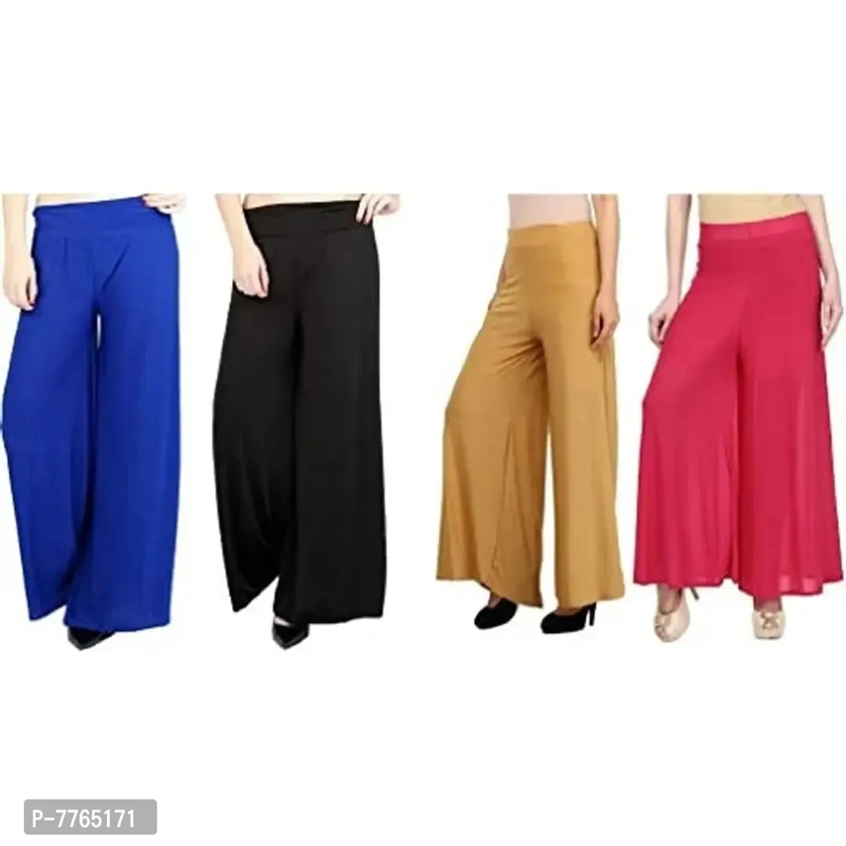 Aglobi Womens Cotton Lycra Palazzo Pant Pack of 4 Free Size (Free Size, B,P,BL,BE)