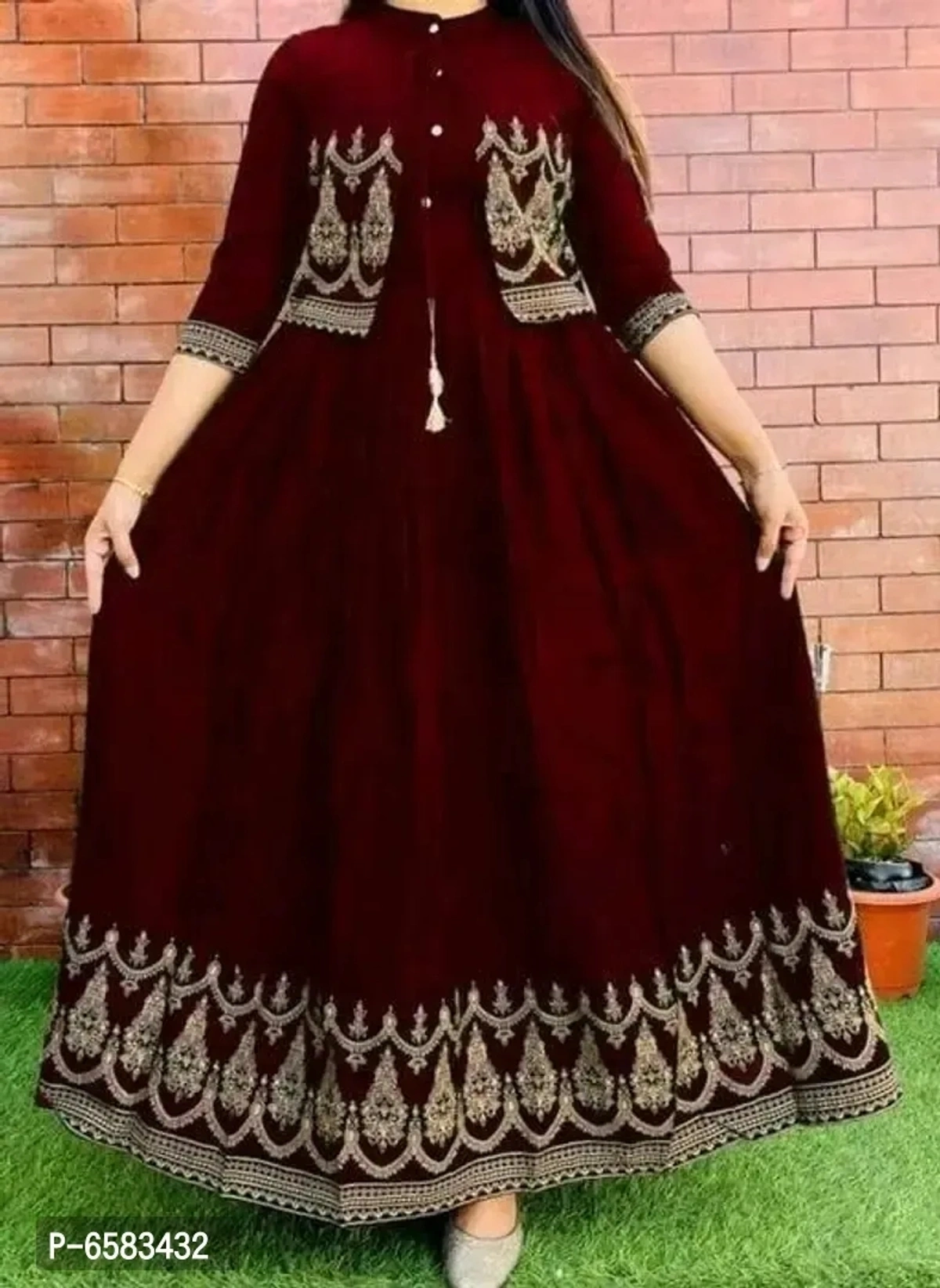 Alluring Maroon Rayon Embroidered Kurta with Jacket Set For Women