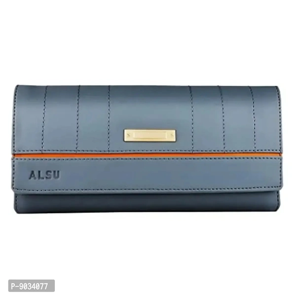 ALSU Women's Trendy Blue Hand Clutch Wallet with Phone Pocket Card Holder (klm-014gryblu)