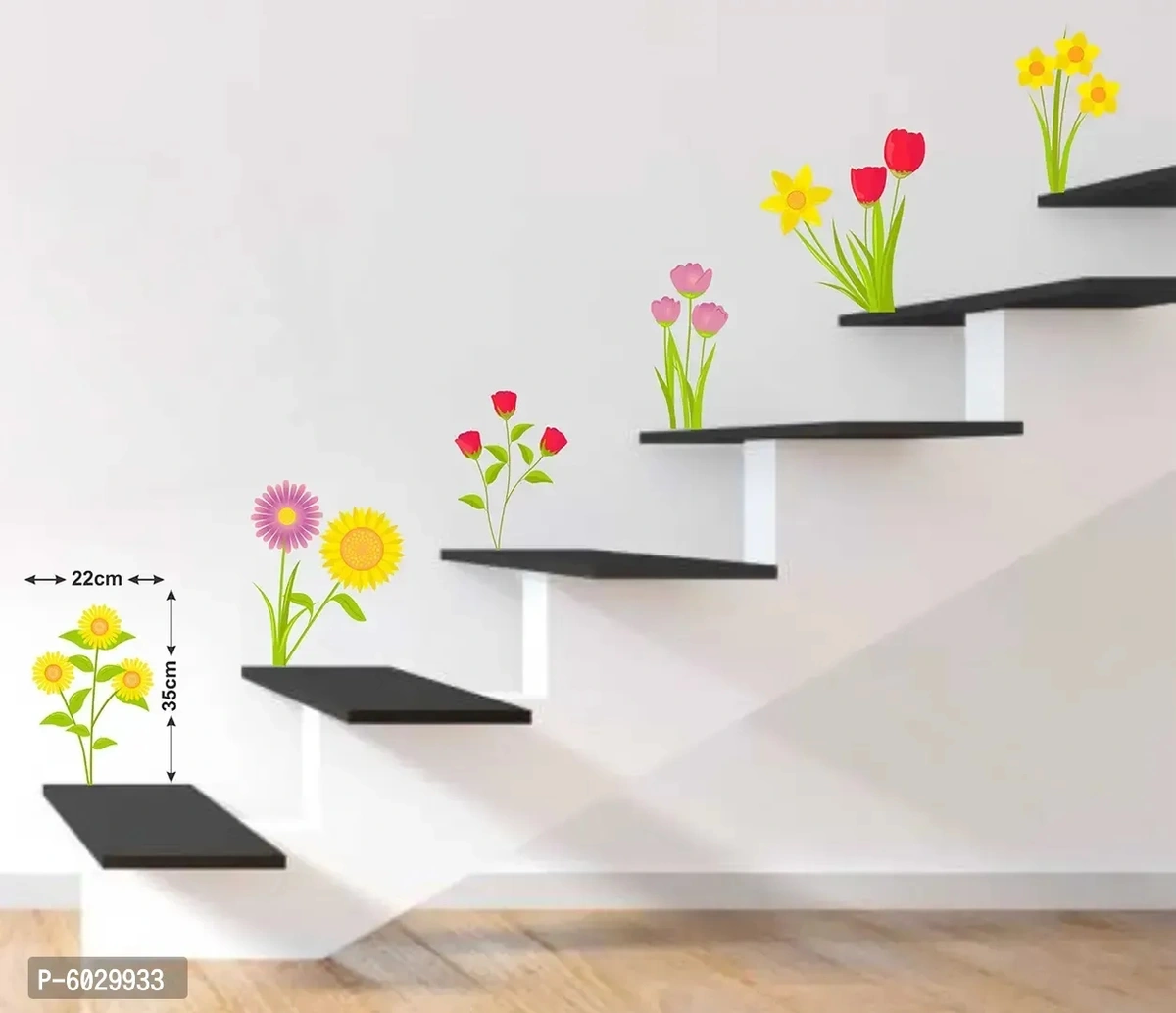 Attractive Beautiful Flowers In Steps Wall Sticker
