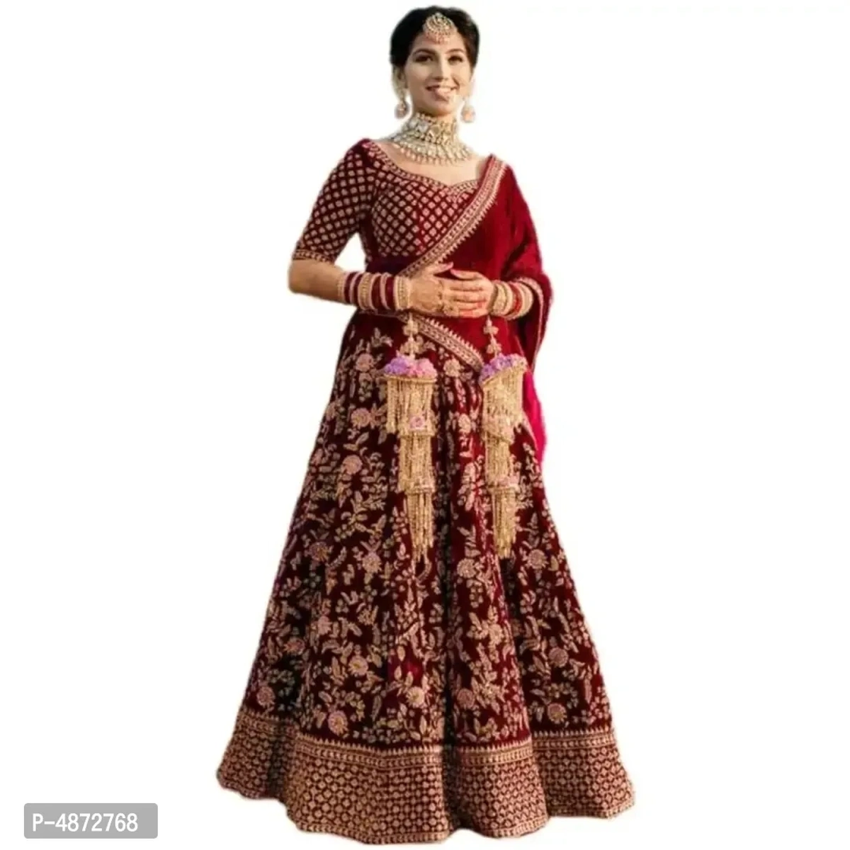 Choli Fabric : Velvet , Lehenga Fabric : Velvet , Dupatta Fabric : Net , Work : Embroidery , Wash Care : Dry Clean Only