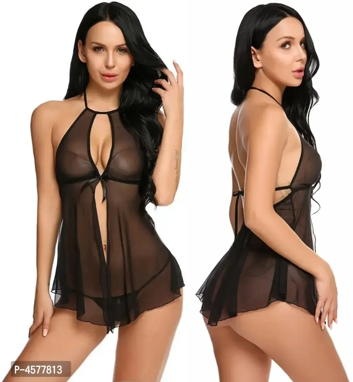 Package contains --- 01 Babydoll with G-String Panty. Size: Size Free, Bust (30 to 36 inches) Waist (28 to 36 inches). Fabric:- Blended Net 90%, Lycra 10%.