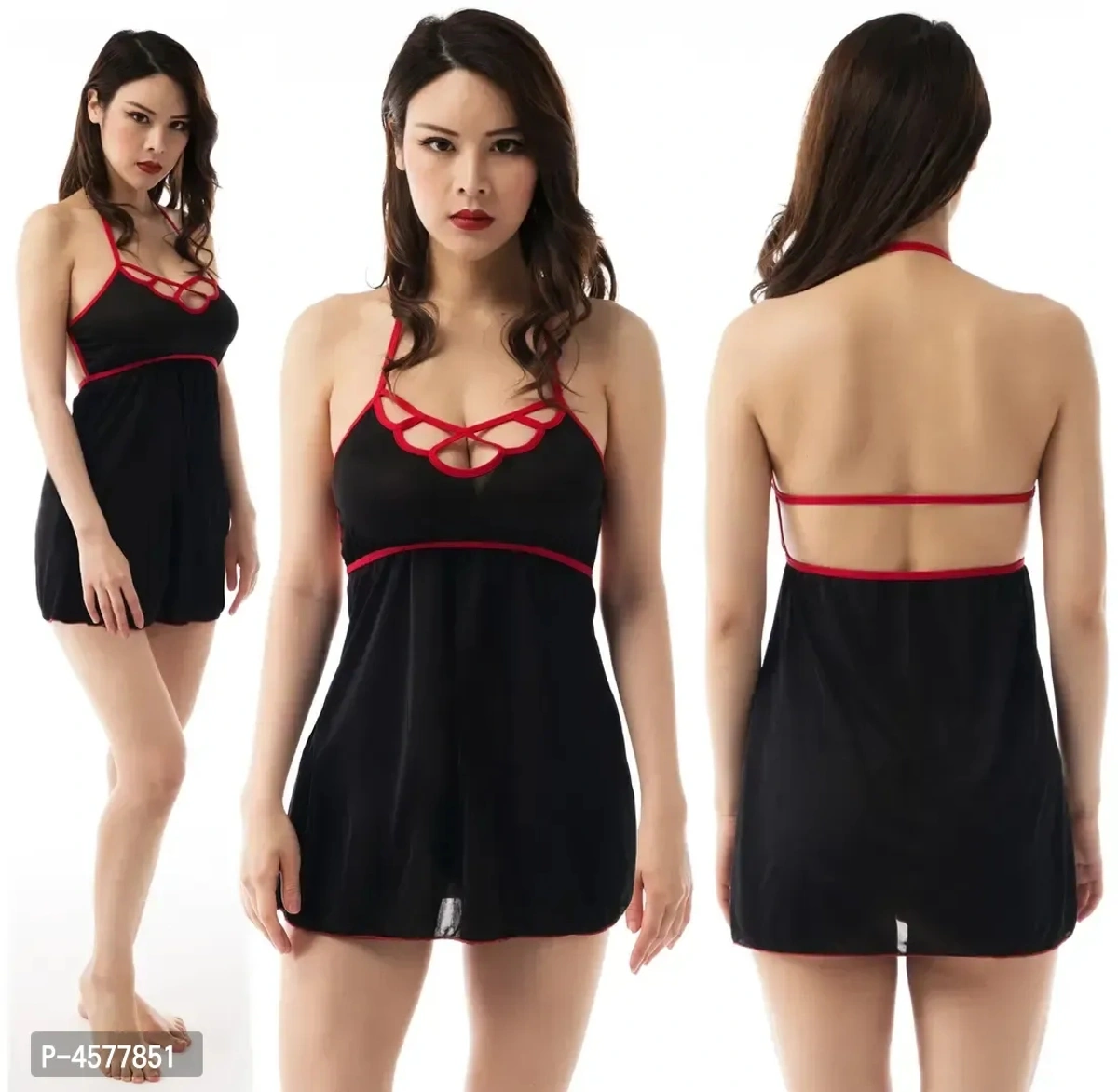 Package contains --- 01 Babydoll with G-String Panty. Size: Size Free, Bust (30 to 36 inches) Waist (28 to 36 inches). Fabric:- Blended Satin 90%, Lycra 10%.