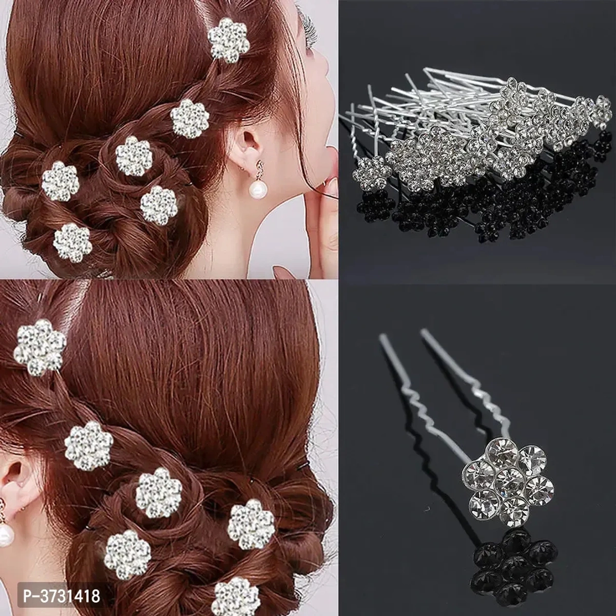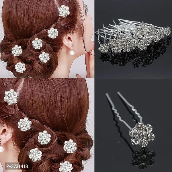 Bridal Rhinestone Hair Accessories/Fancy Juda Pins for Bun Decoration for Women and Girls (Silver) - Set of 12