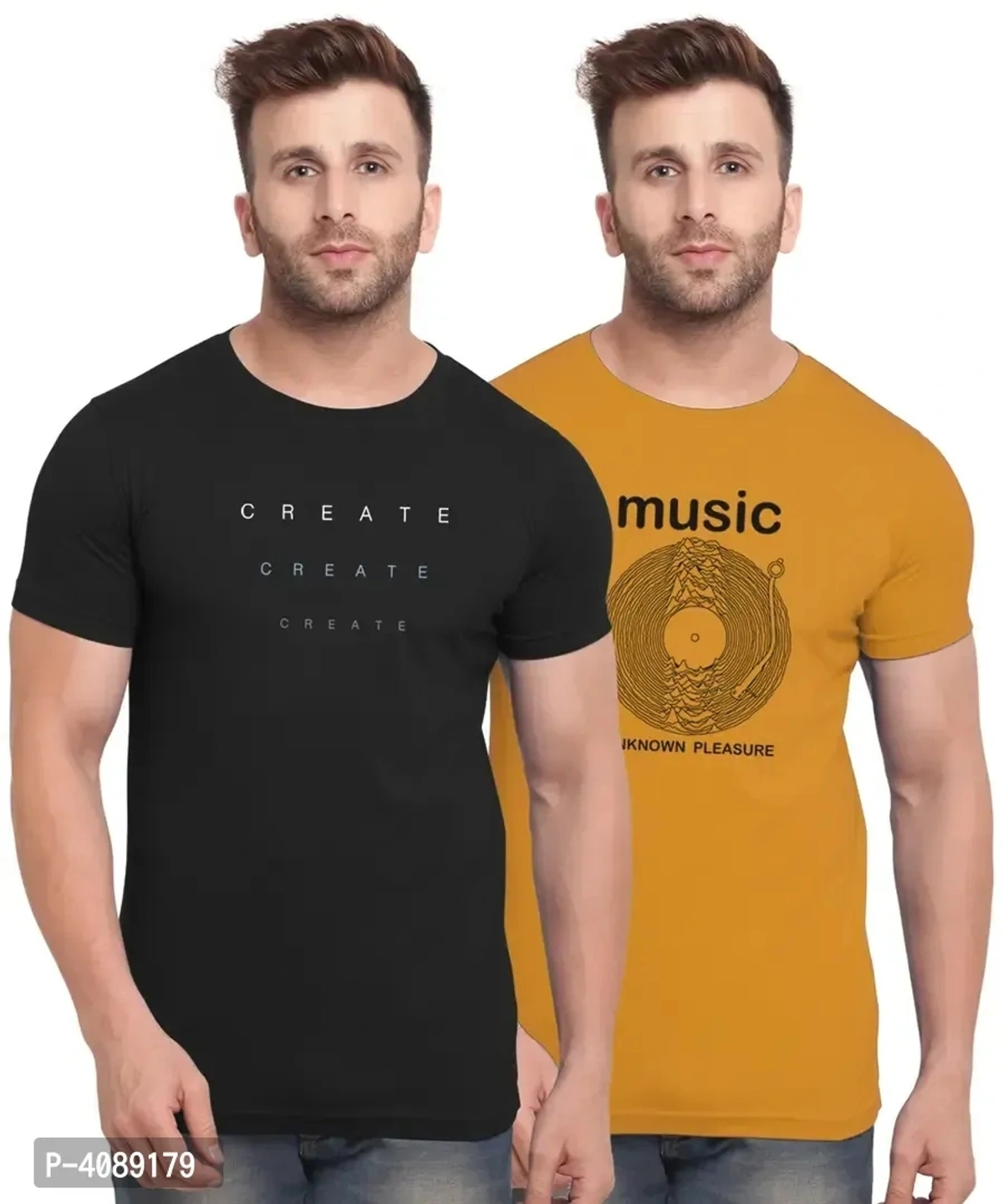 Bullmer Pack Of 2 Printed Cotton Blend Round Neck T-Shirts