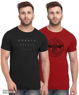 Bullmer Pack Of 2 Printed Cotton Blend Round Neck T-Shirts