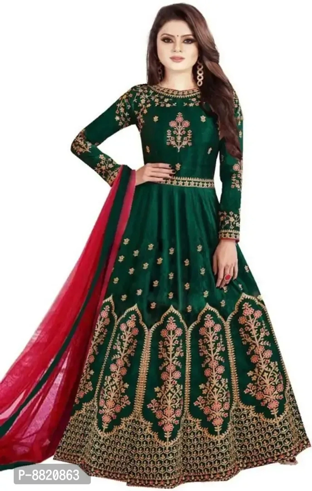 Classic Art Silk Embroidered Gowns with Dupatta Women