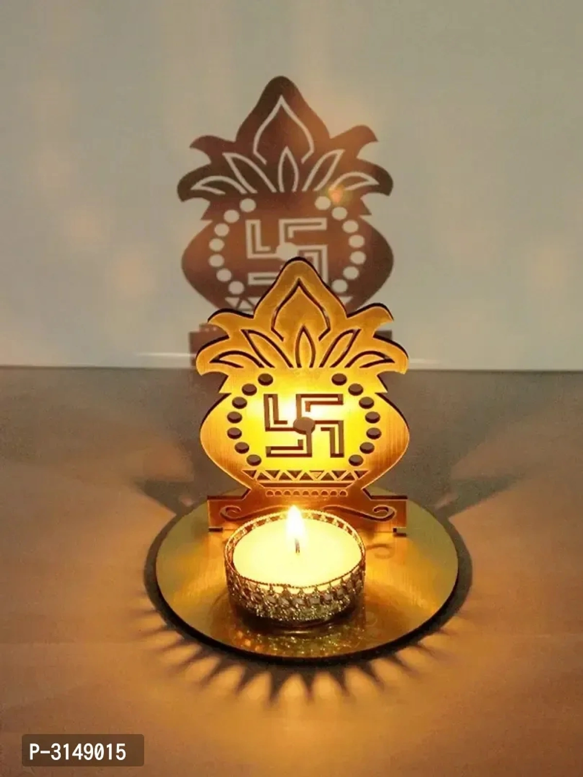 Classy Golden MDF Shadow Kalash Tealight Candle Holder