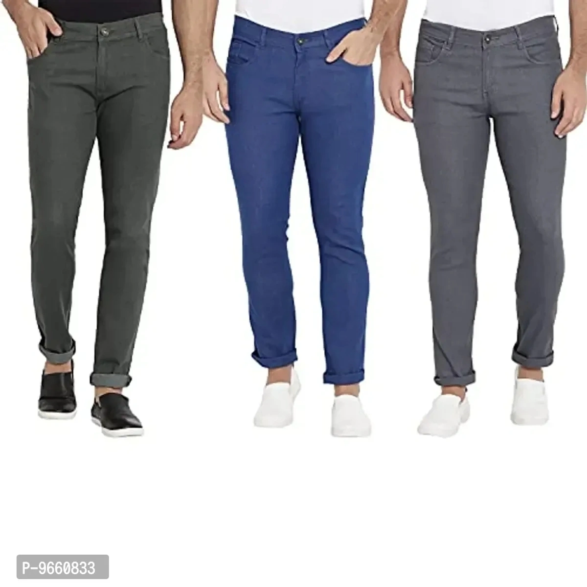 DAIS Men Skinny Fit Mid Rise Mildy Wash Olive, Grey and Light Blue Pack of 3 Jeans