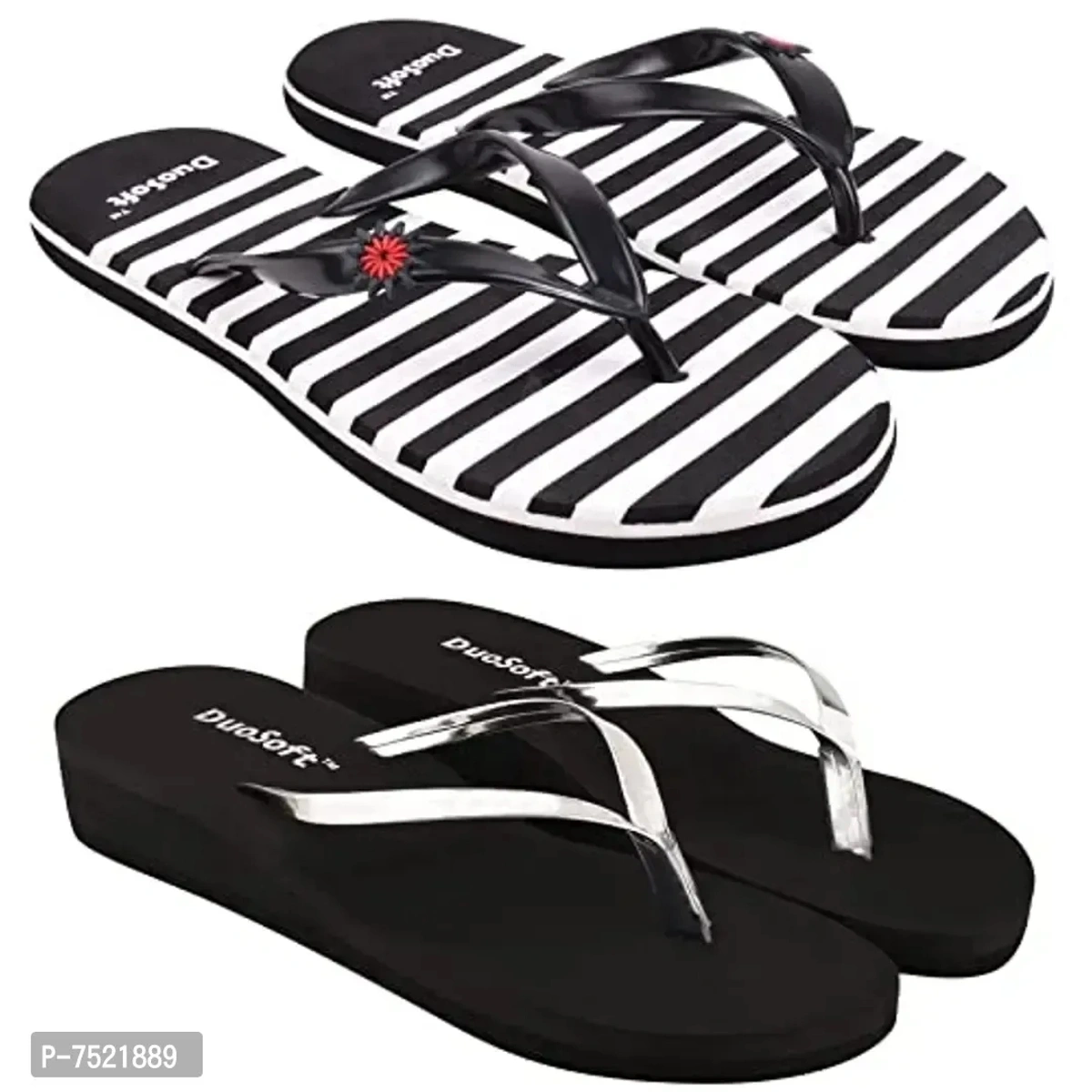 Duosoft Stylish Comfort Super Soft, Fabrication Flip Flop Padded Heels Slippers For Womens Girls, Material: Eva, (Ds-005-Mix_Ds-009-Blk), Size: 4 To 8, Pack Of 2.