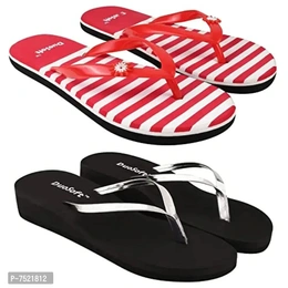 Duosoft Stylish Comfort Super Soft, Fabrication Flip Flop Padded Heels Slippers For Womens Girls, Material: Eva, (Ds-005-Mix_Ds-009-Blk), Size: 4 To 8, Pack Of 2.