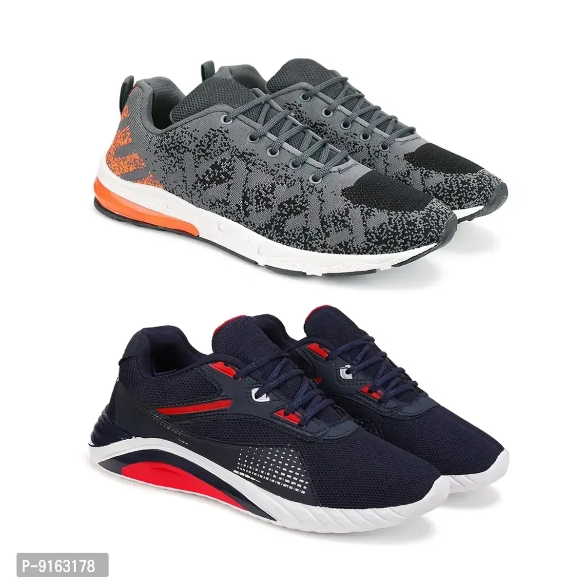 Elegant Canvas Self Design Sports Running Shoes For Men- Pack Of 2