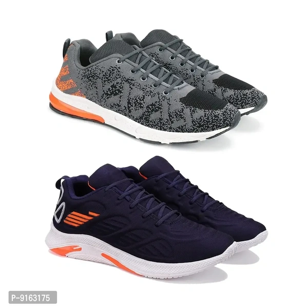 Elegant Canvas Self Design Sports Running Shoes For Men- Pack Of 2