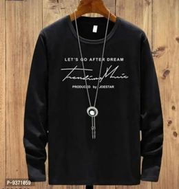 Elegant Cotton Black Round Neck Printed Full Sleeves T shirt For Men