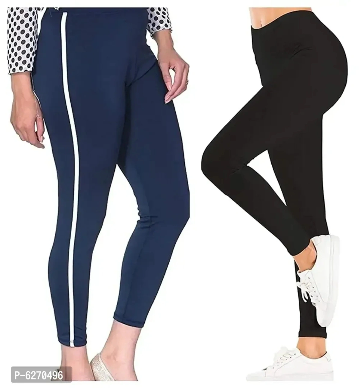 Elegant Cotton Stretchable Striped Jeggings For Women And Girls- 2 Pieces