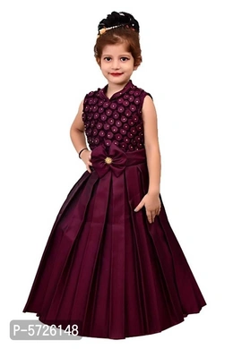 Elegant Purple Sarin Blend Self Pattern Dress For Girls