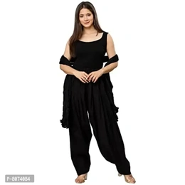 ENDFASHION Women's Cotton Blend Semi Patiala Salwar with Dupatta Set Free Size || SEMI Patiala || SEMI Patiala Pants || Solid Cotton Patiala || Patiyala || (Black)