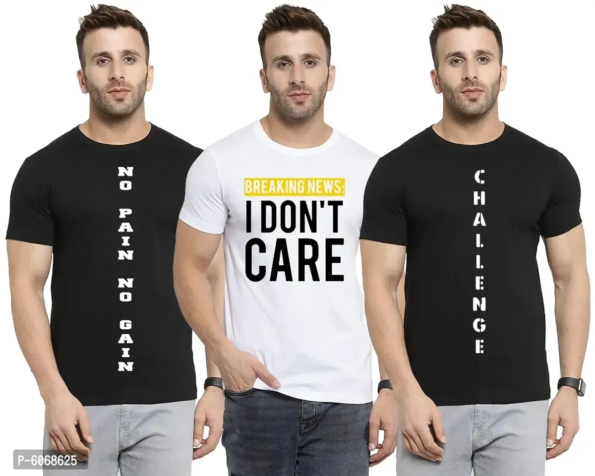 Cotton Blend Printed Round Neck Tees For Men And Boys (Pack Of 3)