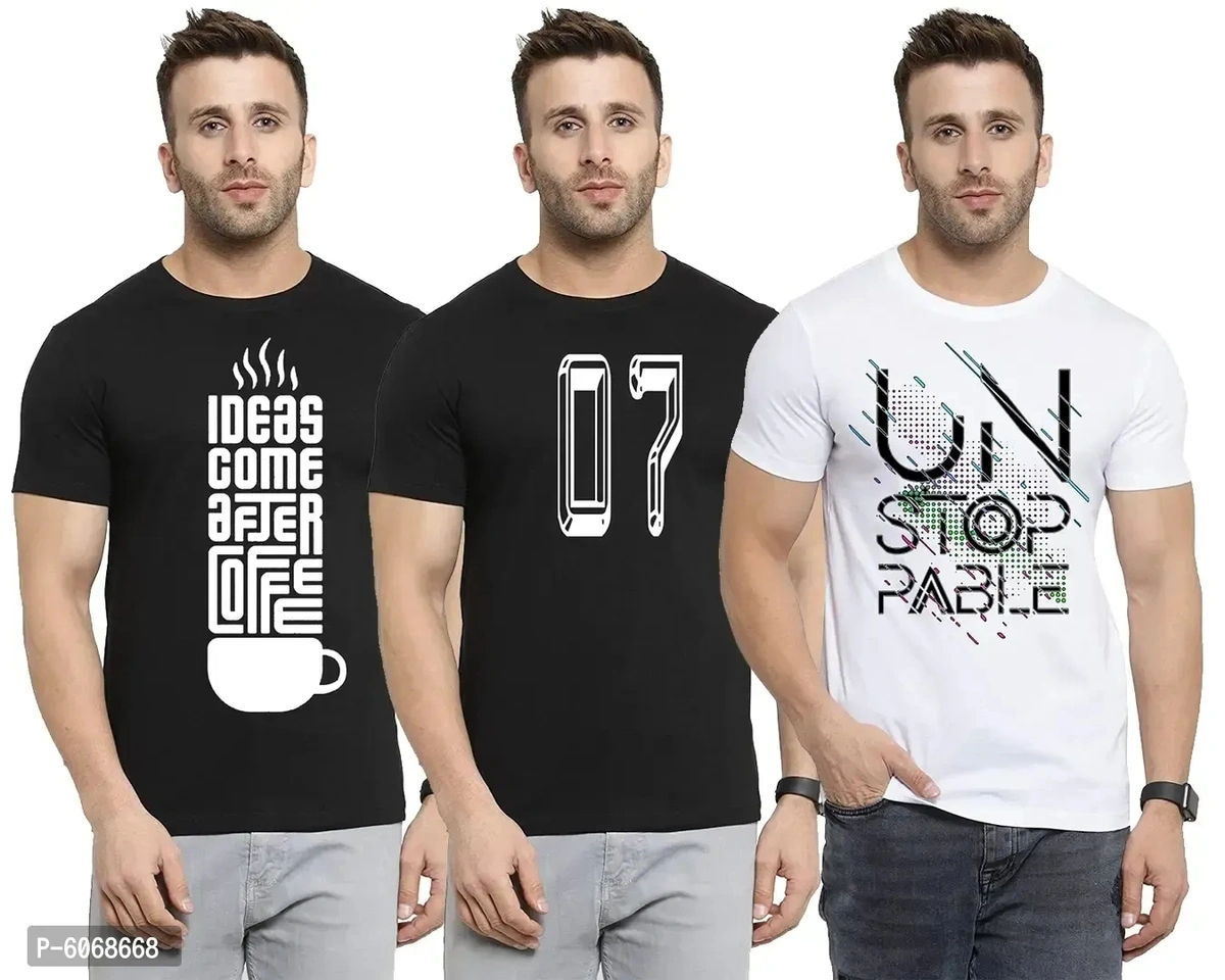 Cotton Blend Printed Round Neck Tees For Men And Boys (Pack Of 3)