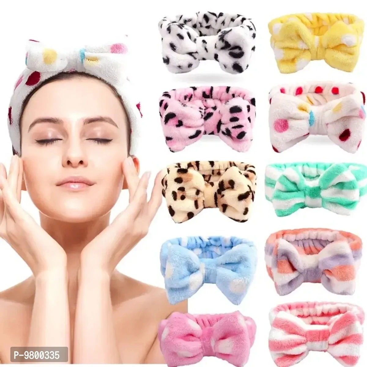 Facial Spa Makeup Cleansing Cute Bow Velvet Elastic Bow Headband (Random Color) - Pack of 2 - Head Band (Multicolor)