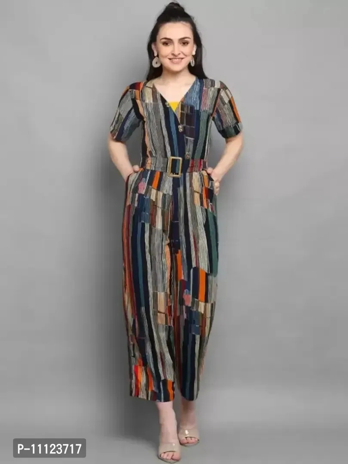 Fancy Rayon Jumpsuit For Women,Fabric: Rayon Sleeve Length: Three-Quarter Sleeves Pattern: Printed Sizes: S (Bust Size: 34 in, Length Size: 52 in, Waist Size: 30 in, Hip Size: 36 in) M (Bust Size: 36 in, Length Size: 52 in, Waist Size: 32 in, Hip Size: 38 in) L (Bust Size: 38 in, Length Size: 52 in, Waist Size: 34 in, Hip Size: 40 in) XL (Bust Size: 40 in, Length Size: 54 in, Waist Size: 36 in, Hip Size: 42 in)