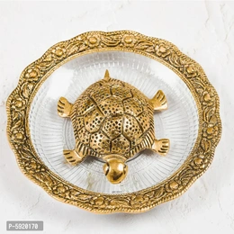 Feng Shui Gold-Toned Turtle with Diwali Aarti Scroll,3D Greeting Card,and 10 Diyas (Gift Pack of 13)