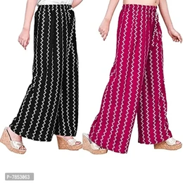 Full Length Printed Rayon Palazzo for Girls and Women with miyani and dori. Pack of 2 (Free Size, Black, Pink)