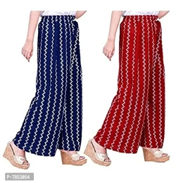 Full Length Printed Rayon Palazzo for Girls and Women with miyani and dori. Pack of 2 (Free Size, Navy Blue, Maroon)