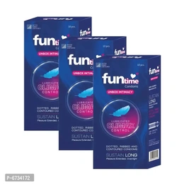 Funtime Dotted Ribbed and Contoured Long Lasting Climax Control Condoms for Men Count 10 ( Pack of 3 )