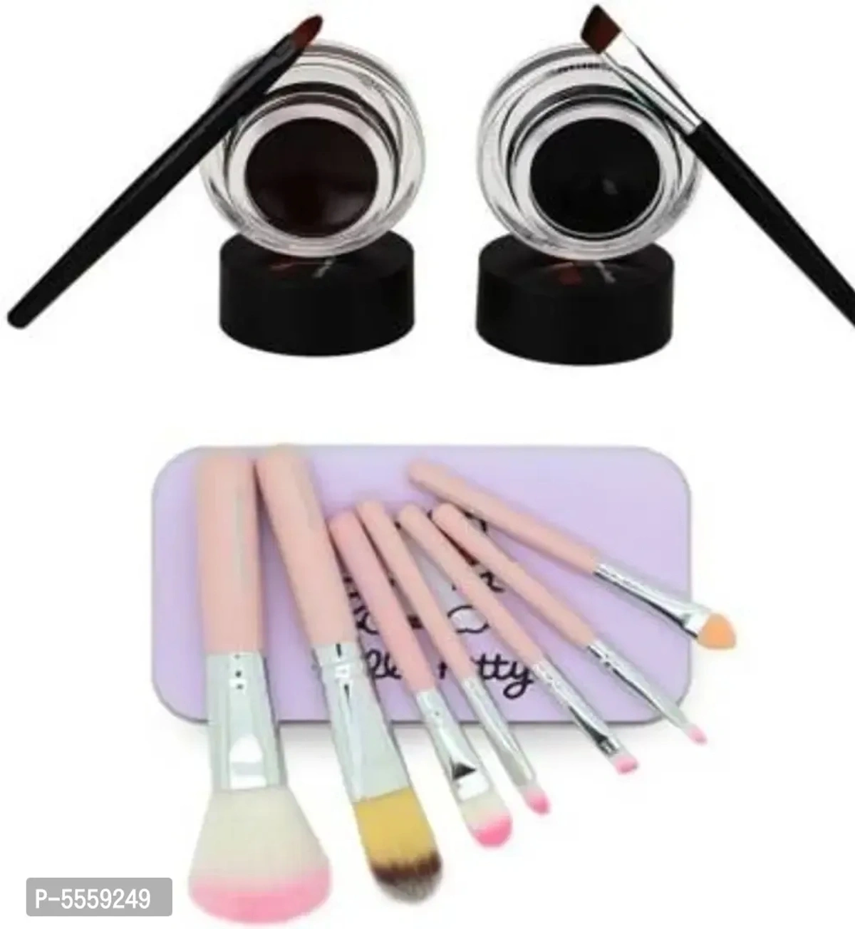 Gel Eye Liner (Black, Brown) Makeup Brushes Set Of 7 (8 Items In The Set)