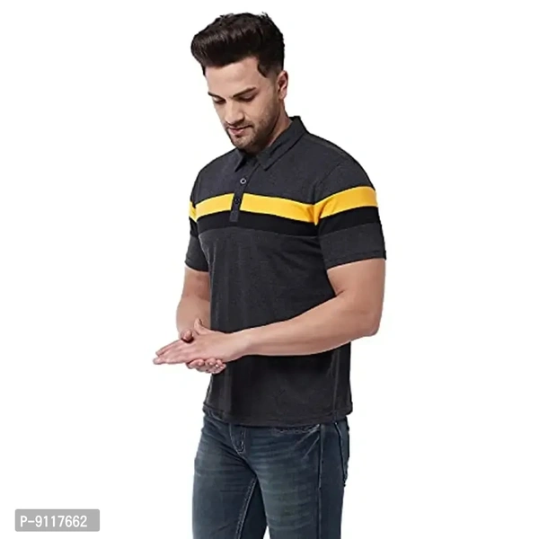 bull; S recommended Garment Chest is 38, M recommended Garment Chest is 40, L recommended Garment Chest is 42, XL recommended Garment Chest is 44.bull; Neck:: Polo Collar, Color:: Black Yellow, Fabric:: Blended Cottonbull; Sleeve:: Half Sleeve, Pattern:: Color-Blocked, Style Type:: Polo T-Shirtbull; Length:: Waist Length, Closure:: Button, Wash:: Machine WashGritstones Black Color Cotton Half Sleeve Color Block Printed Polo T-Shirt