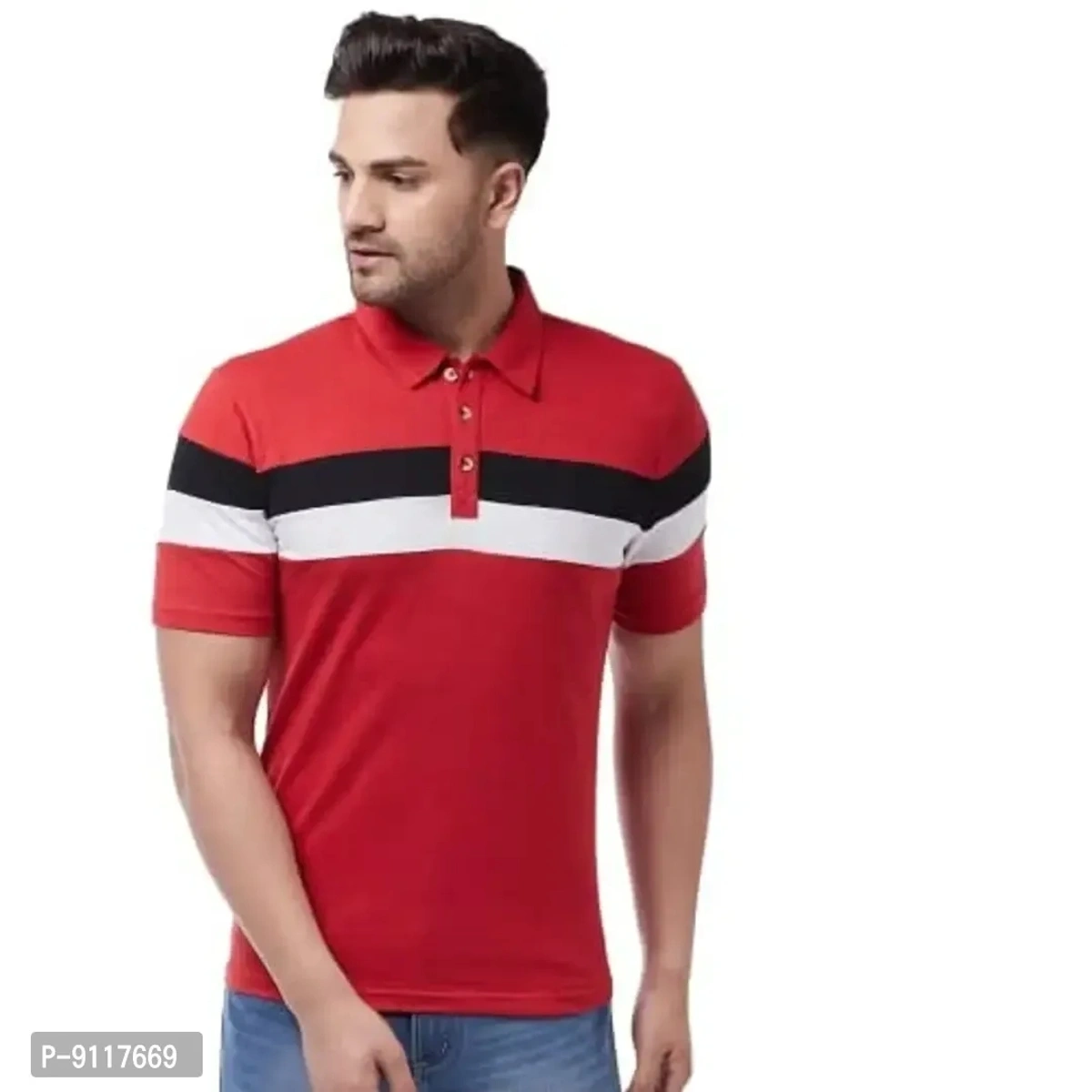 bull; S recommended Garment Chest is 38, M recommended Garment Chest is 40, L recommended Garment Chest is 42, XL recommended Garment Chest is 44.bull; Neck:: Polo Collar, Color:: Red Black, Fabric:: Blended Cottonbull; Sleeve:: Half Sleeve, Pattern:: Color-Blocked, Style Type:: Polo T-Shirtbull; Length:: Waist Length, Closure:: Button, Wash:: Machine WashGritstones Red White Color Cotton Half Sleeve Color Block Printed Polo T-Shirt