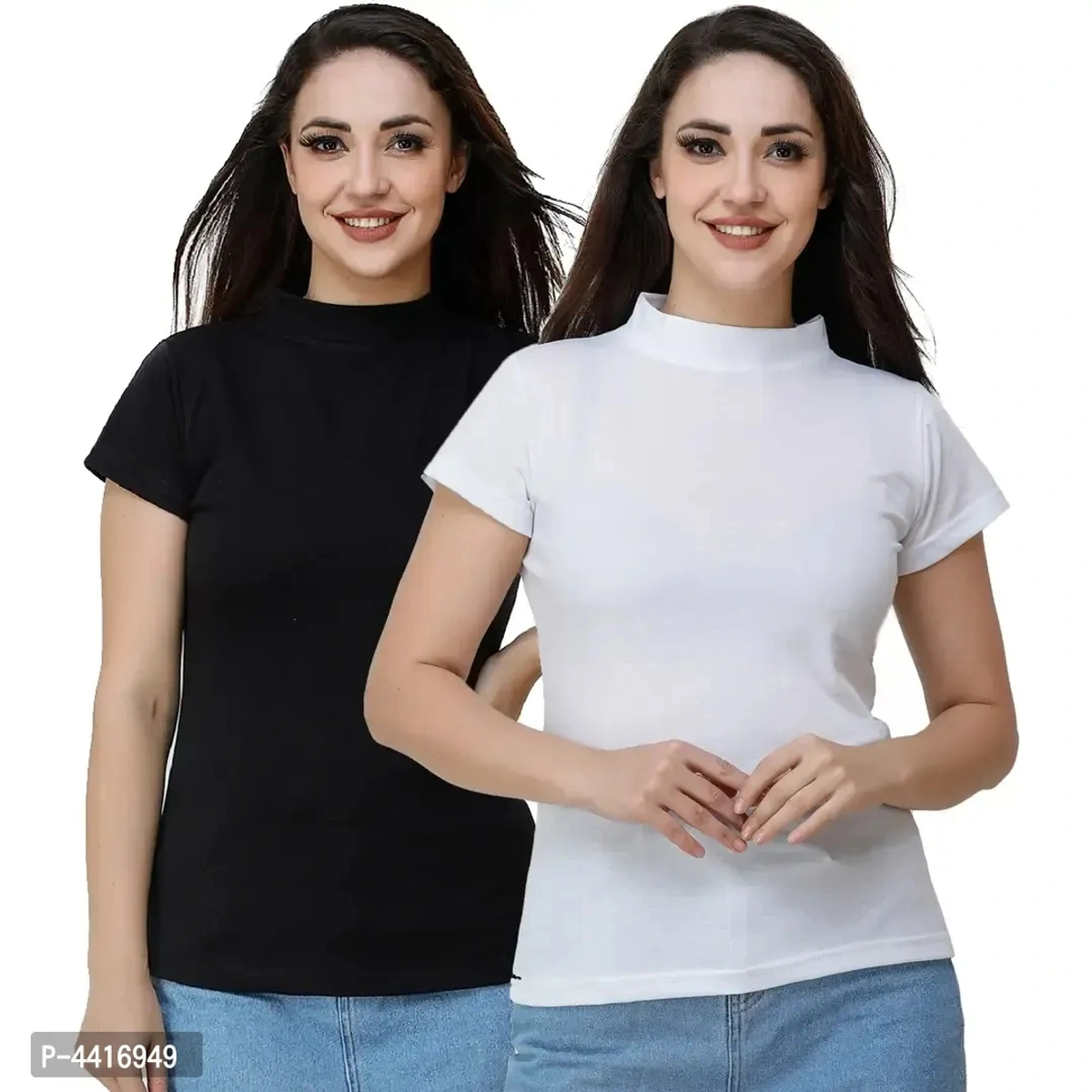 Halter neck solid T shirt for women pack of 2