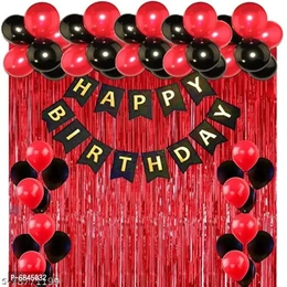 Happy Birthday Party Decorationndash; Red amp; Black Combo Pack of 32 Pcs | Happy Birthday Banner 1 PCS | Read Foil Curtains 1 pcs | 30 Metallic Balloons (15 Red amp; 15 Black) Type : Balloons Color : Multicolor Multipack : 1 Country of Origin : India