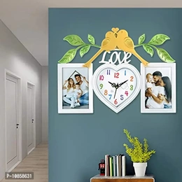 Harbour Analog Latest Stylish New Models Wall Clock with Photo Frames for Home Living Room Hall Bedroom (Size Height 29 X Width 49 cm)- Home Decor Big Size Wall Clock MZ 77A 17, White, King