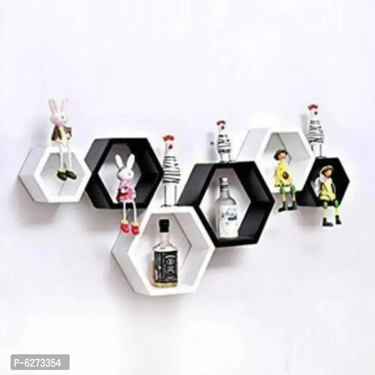 Hexag Wooden Wall Shelf (Number of Shelves - 6