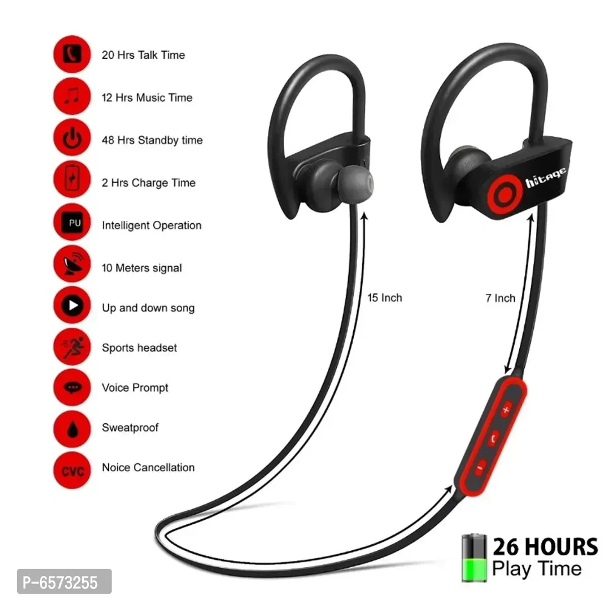 Hitage MBT-5135 Neckband Wireless Earphones With Mic Product Type: Neckband Compatibility: All Smartphones Color: Red Mic: Yes Bluetooth Version: 5.0 Warranty_Type: Carry In Charging Type: Micro USB Battery Backup: 10 Hours Control Button: Yes Play Time: 10 Hours Water Resistant: No This is Hitage Providing best technology MBT-5139 BLUETOOTH Mobile Accessories Products. Hitage products serve well and last longer. in a ocean of brands and products, Hitage is a where values and customer satisfaction from the very root of its structure. and this of hitage is High Performance has high sound quality, compact design and elegance color. Good sound quality, comfort, and hands-free convenience.