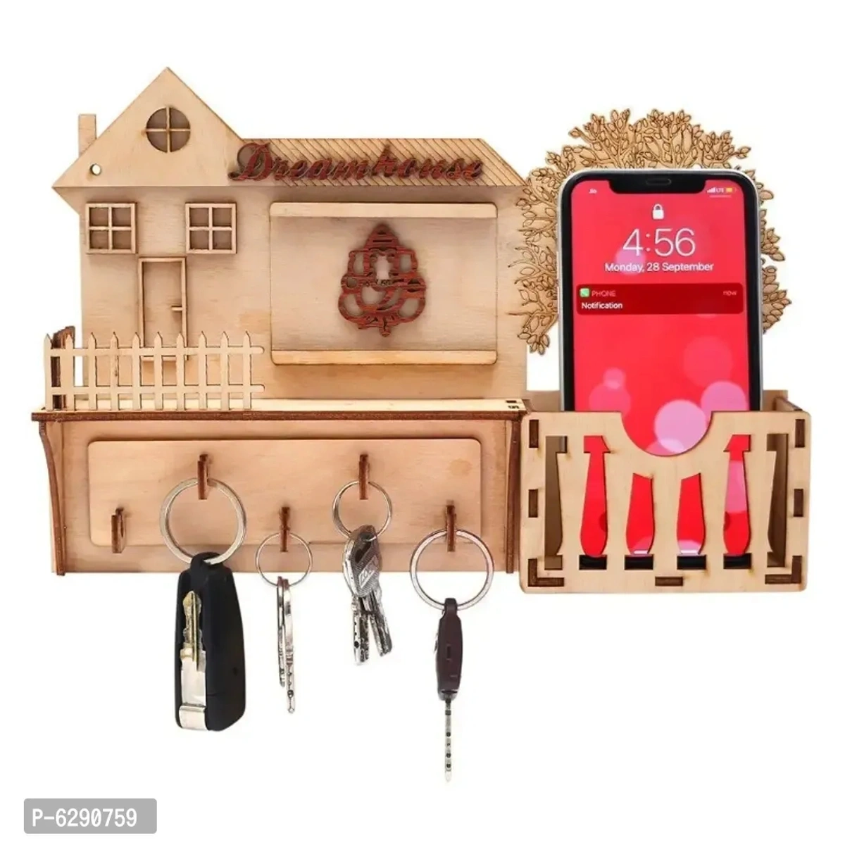 :: Product Features :: ✔️ It is designed to multi key & mobile stand hold and organize all of your personal utility goods with easy access to them. ✔️ A compact wall shelf with key holder ideal to be placed in the entry way or any wall to hang your keys Material: Wood Multiple Ways.Perfect Space Utilization For Modern Home Made of superior high grade Pre-Laminated Engineered Wood with Wood Grain Finish Contemporary Wall Shelf to keep a beautiful figurine or showpiece or any other utility item ✔️ The organizer is well constructed, sturdy, durable to use for many years. For making these best high quality materials. ✔️ The excellent handcraft. The surface of the stand is treated with a special protective laminate, which protects the product from excessive moisture or dryness and prevents all kinds of damage. ✔️ Living room, bedroom, kitchen, Bedside nightstand, home & office anyplace. All in one handy location. ✔️ The attractive design and structure of the shelf has been a result of