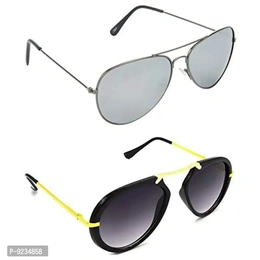 Hrinkar Unisex Pilot Sunglasses Grey Golden Frame, Silver Grey Lens (Medium) - Pack of 2