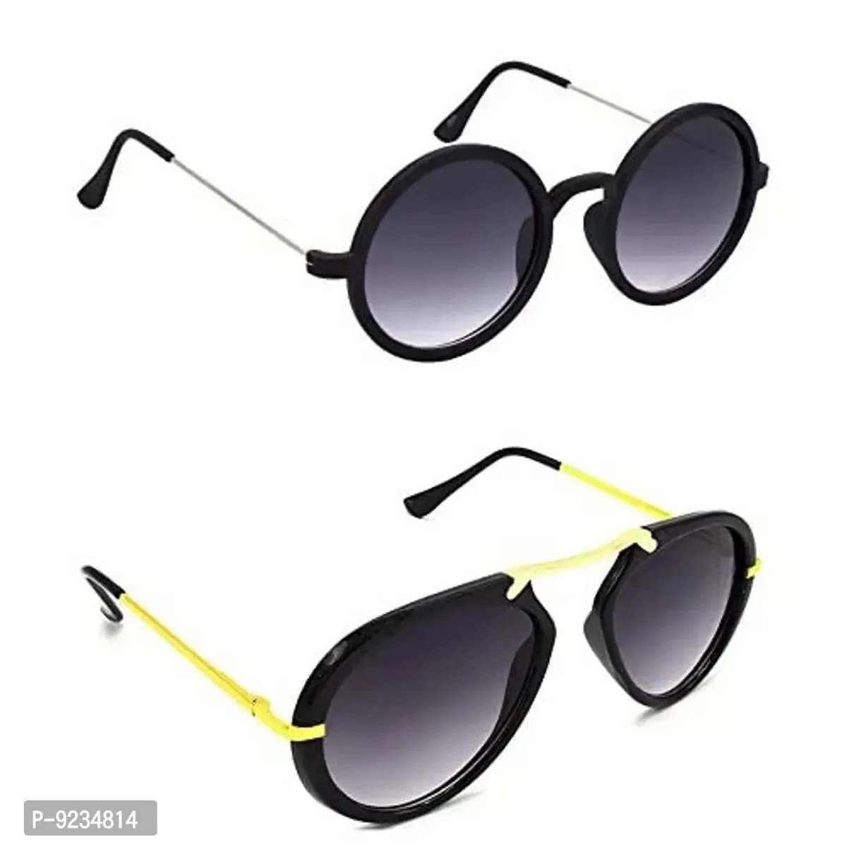 Hrinkar Unisex Round Sunglasses Silver Golden Frame, Grey Lens (Medium) - Pack of 2