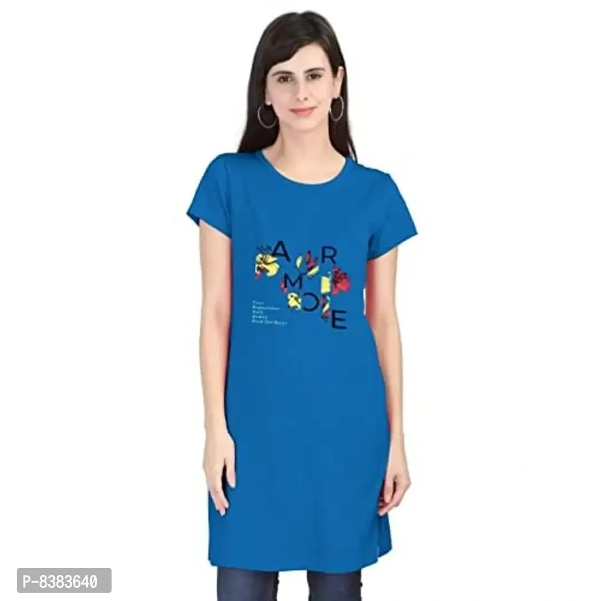 Womens Long Length Tshirt made of 100% Comed Cotton, soft handfeel in nature.. attricative chest print and suit for casual/Evening & night wear..