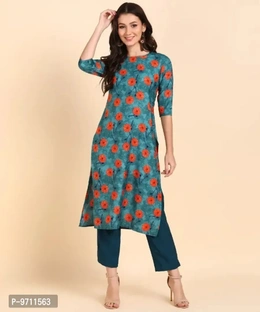 Kurti Pant Set for Women - Crepe Long Straight Printed Kurta with Pant