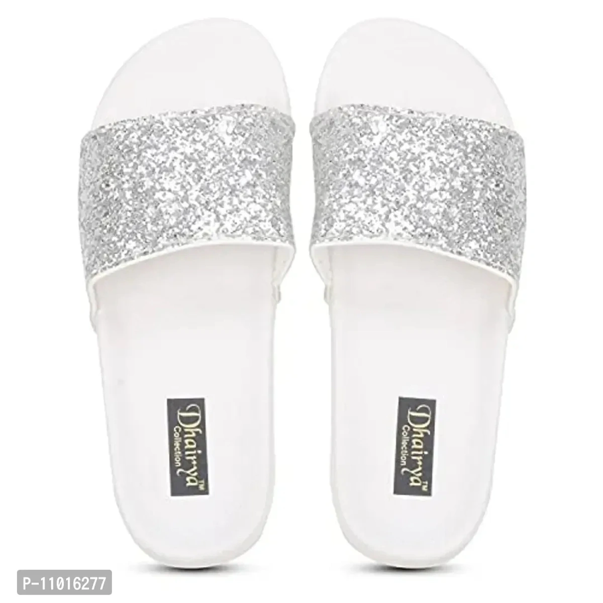 Ladies Latest Stylish Sparkle Flip Flop Slipper (White, numeric_6)