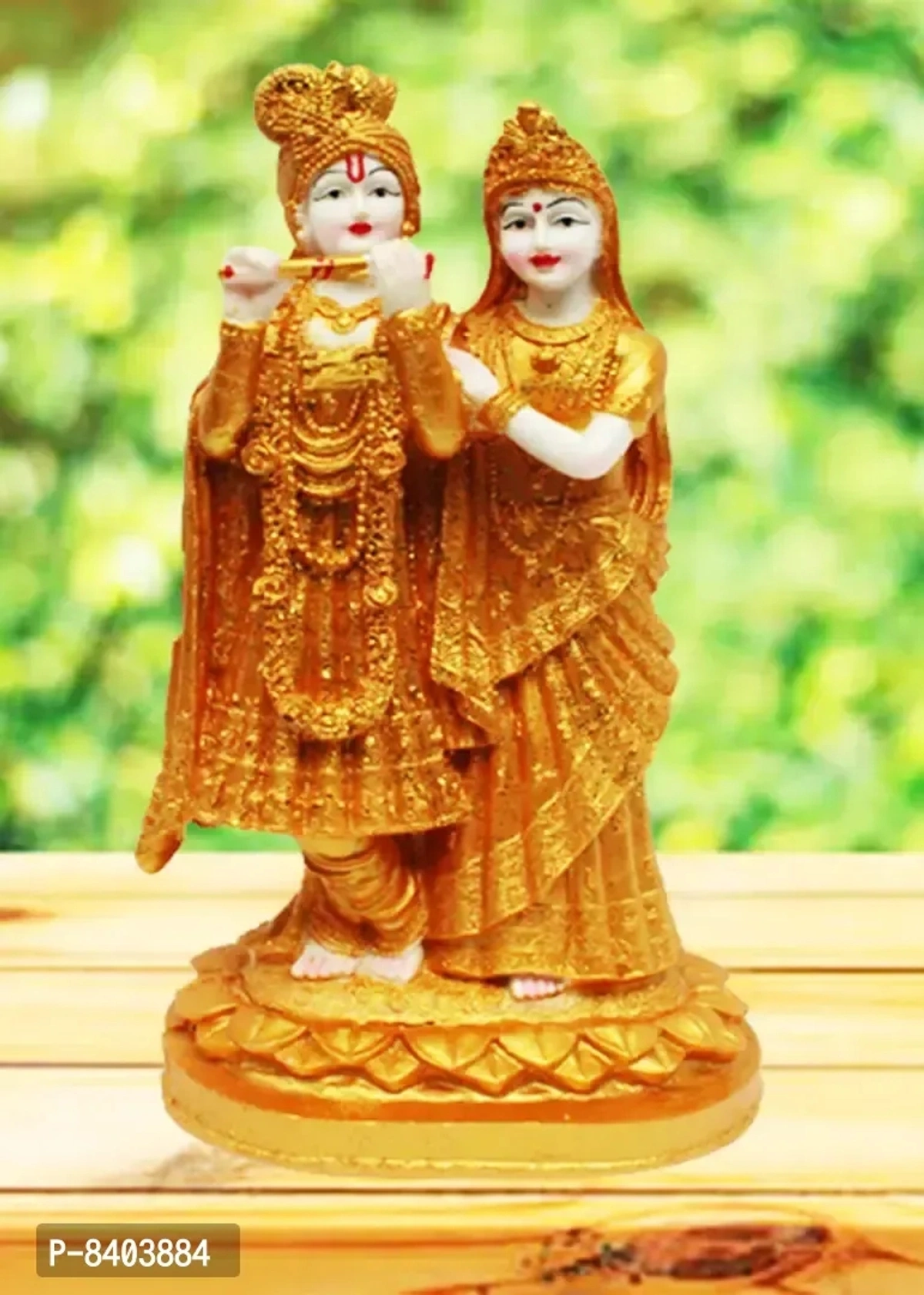 Revive present this beautifully hand crafted Poly Resin Radha krishna idol, iconic symbol of love and togetherness. Radha krishna are the embodiment of pure love amp; unity. This poly-resin idol is hand crafted and is suitablenbsp;for worshipping as well as home decoration. It is a best gift for marriage anniversary, parents , mothers day , wedding return gift , birthday , house warming , office / shop inauguration , festive occasions - like diwali , grah pravesh. This decorative murti can be used as pooja mandir interior decoration accessories and table decor items or showcase decoration . It is easily cleanable by dry cotton cloth. Lord Krishna and Radha standing, this statue will definitely become your favourite in no time. This statue has a beautiful look, with Lord Krishna playing his flute and Radha leaning on his shoulder. Made of Pure Poly Resin, this statue can also be a perfect gift. Ideal for birthday gifts, anniversary gifts, occasion gifts, house warming gifts, devotional gifts,