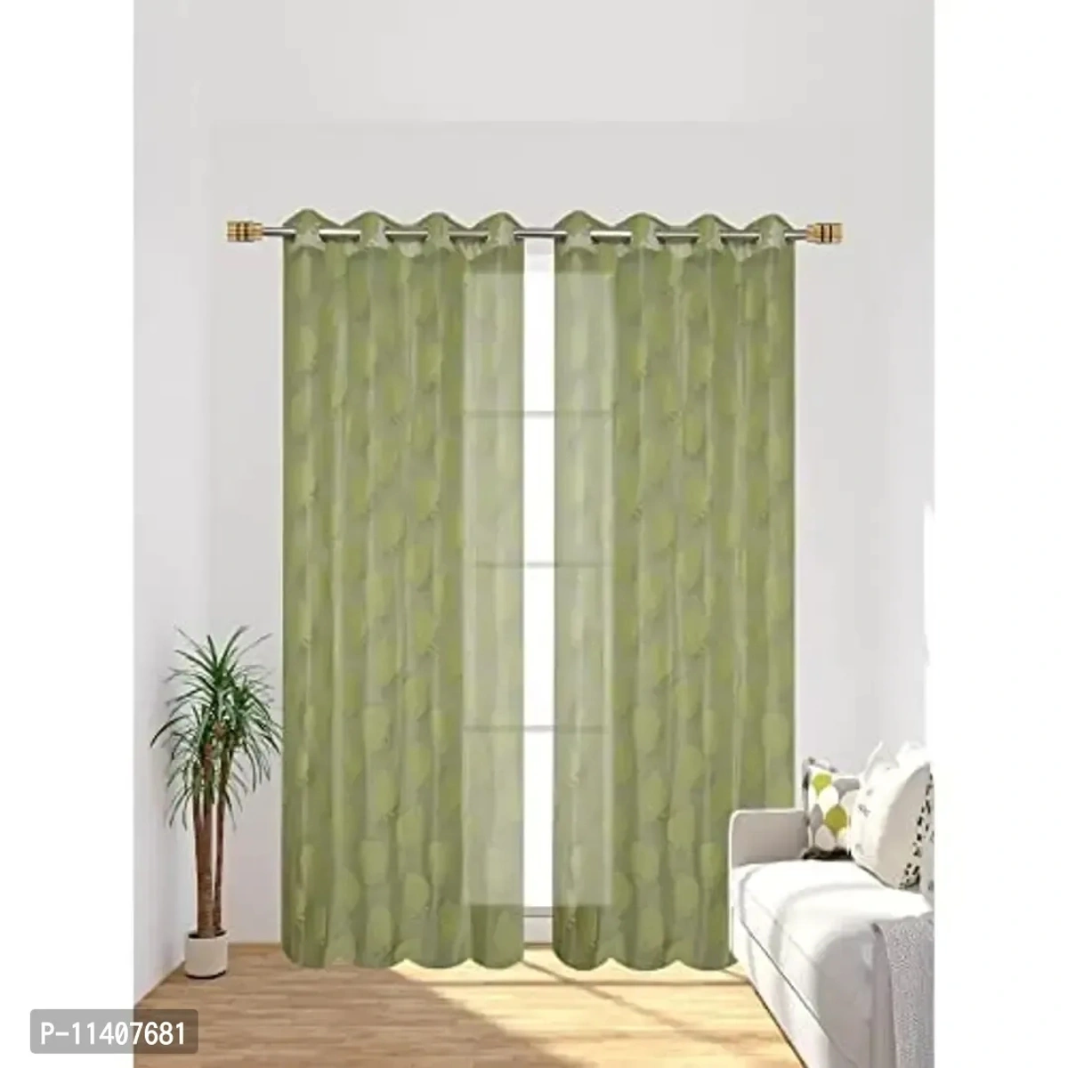 AMAZING FABRIC: The fabric is super soft. Its material makes it appear more elegant. Each curtain panel has 8 Iron Eyelet Rings / grommets. Inside Diameter of each grommet is 1. 6-inch and 2. 3-inch for outside diameter. So it will accommodate up to 1. 5-inch rod. Transparency:It allows natural sunlight to pass through it thus illuminates the room.It gives you a little privacy by being almost see-through. WISE COMPATIBLE: Thread trimmed and wrinkle free, all sets for you to put them up right away. Suitable perfectly for window. EASY CARE: Care Instructions: Machine wash in cold water. Quick iron or steam clean when needed. Do not bleach! Color : Green , Size : Door - 5 Feet Material: Polyester, Thread Count: 180, Gsm: 180 Package Contents: 2 Curtain Size: 48 Inch x 60 Inch Manufactured by MallowWorld, Made in India. Disclaimer: Product colour may slightly vary due to photographic lightings and monitor settings.