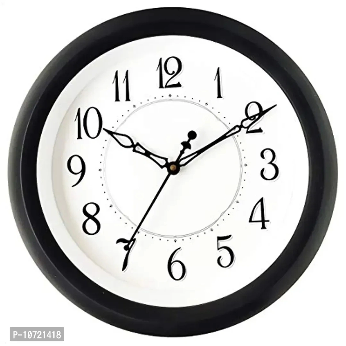 Masstone Shraddha Series 2047 Black Round Plastic Body Analog Wall Clock with Glass (27.5 x 27.5 cm), Qty: 1