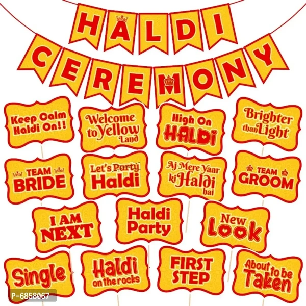 Welcome to the amazing world of party supplies!!! WE CREATE YOU CELEBRATE so dont be shy and plan your party hassle free. Just dream of the thing you need for your party and you will get it done in no time. So just forget all the worries and enjoy the high quality props to make your occasion perfect and memorable for ages. These pack of 16 pcs props including 15 pcs haldi photobooth props and 1 pc haldi banner are printed on high quality Thick Cardboard in vibrant colors exactly as shown in the product Images! These haldi photo props can be used in many occassions like haldi props for bride and family, haldi decoration items for marriage These latest designed props go above and beyond your imagination and expectations! Our highly detailed art pop aesthetics give your party that grand memorable touch you need. Quality and the vibrant colors create a classy and elegant feel for the photobooth props for haldi celebration.