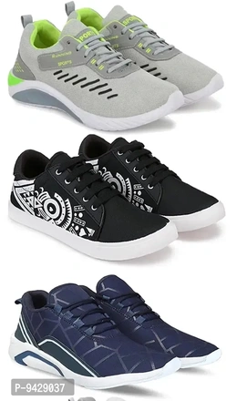 Men Sports Shoes Lace-Up Lightweight Multicolour Shoes For Running Walking gym Trekking and hiking Shoes (Pack Of 3)